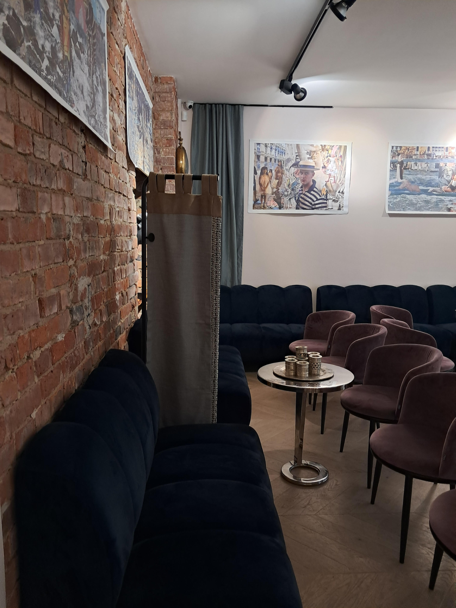- Dla nowoczesnych przedsiębiorców i marek — szukających unikatowej przestrzeni, która robi wrażenie na klientach, partnerach i zespole. Ceniących estetykę, prywatność i prestiż – zamiast zatłoczonych kawiarni i standardowych sal. Spotkania firmowe: zarządy, strategie, rekrutacje, szkolenia, prezentacje, eventy.